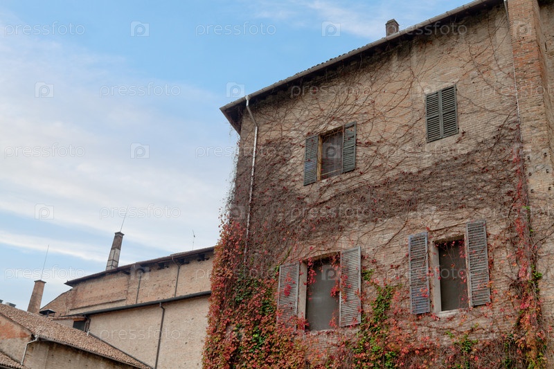 Старые стены дома, покрытые плющом