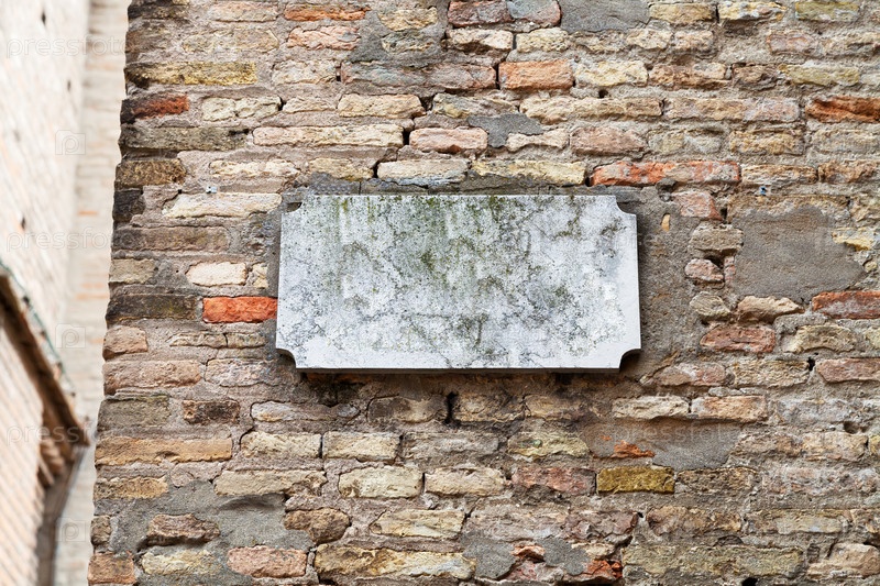 Мраморная табличка на старой кирпичной стене