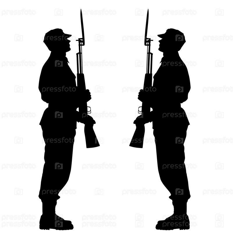 Силуэты солдат во время военного парада. Векторные иллюстрации