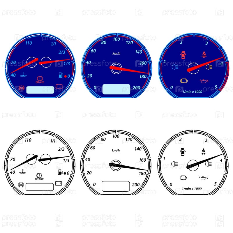 Набор спидометров, векторные иллюстрации