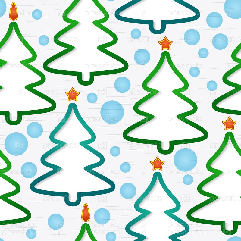 Бесшовный шаблон с новогодними елками и снежинками