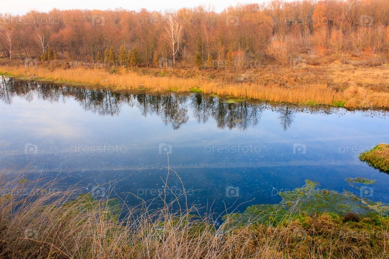 Осенние деревья, отражающиеся в реке