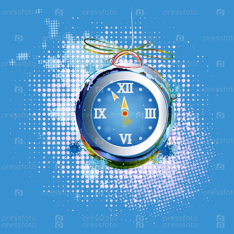 Новогодние праздничные часы на абстрактном фоне. Иллюстрация