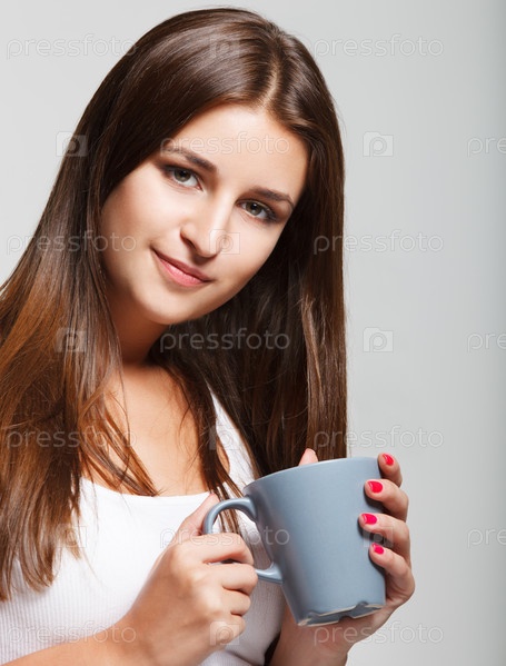 Портрет молодой девушки с чашкой чая