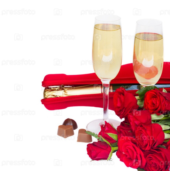 День Святого Валентина, шампанское и розы