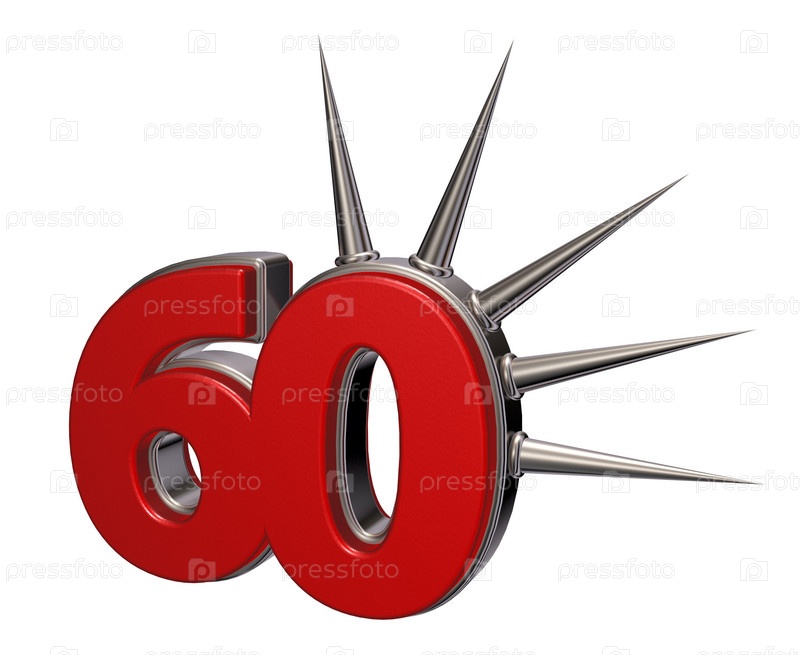 Число 60 с шипами на белом фоне - 3d иллюстрация