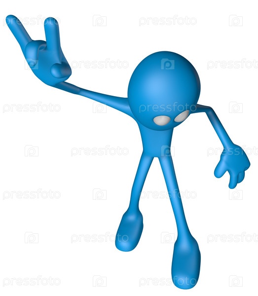 Синий парень показывает руку 'козы' - иллюстрация 3D