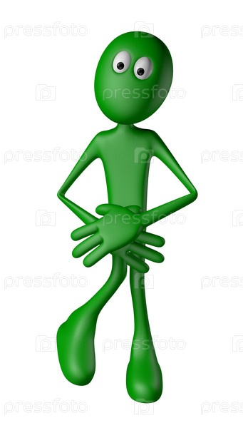 Зеленый парень хочет в туалет - иллюстрация 3D