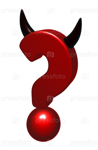 Вопросительный знак с рогами на белом фоне - 3d иллюстрация