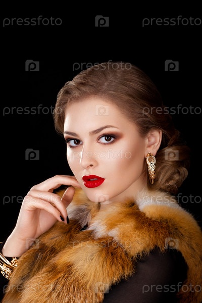 Красивая женщина в пальто с лисьим меховым воротником. Праздники
