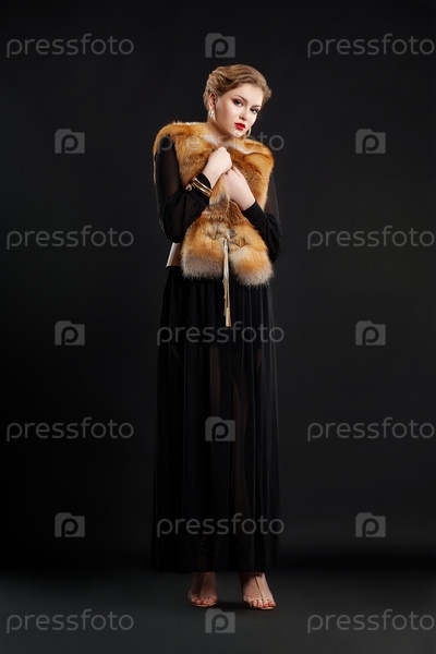 Красивая женщина в пальто с лисьим меховым воротником. Гламурный стиль