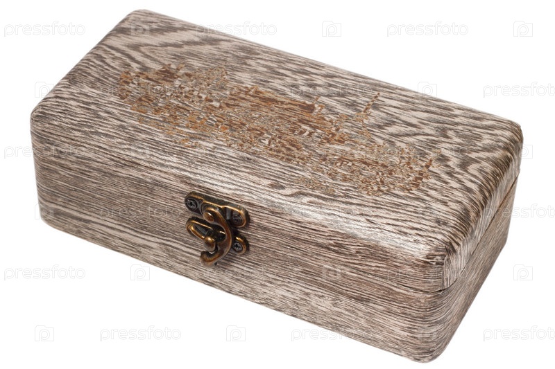 Старинный серый деревянный ларец, изолированный на белом фоне