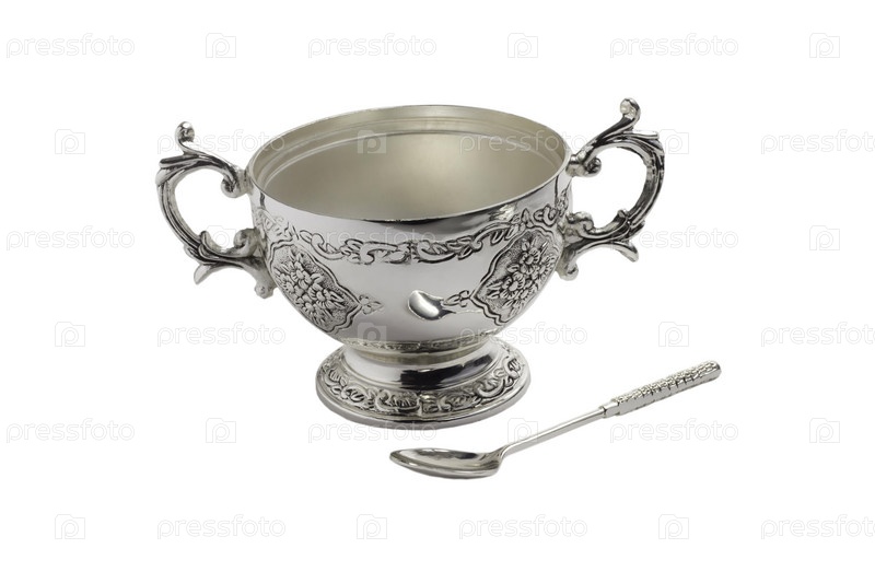 Античный серебряный кубок с ложкой