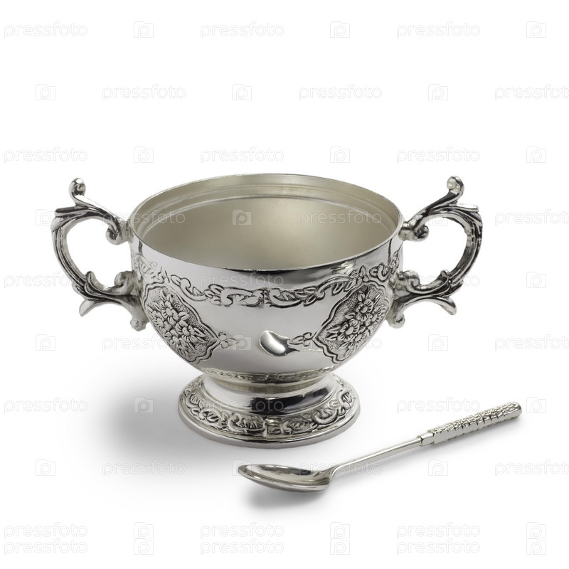 Античный серебряный кубок с ложкой