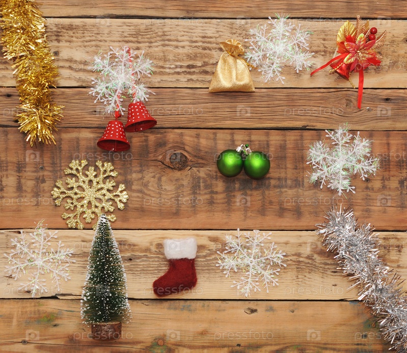 Рождественские украшения на деревянной стене