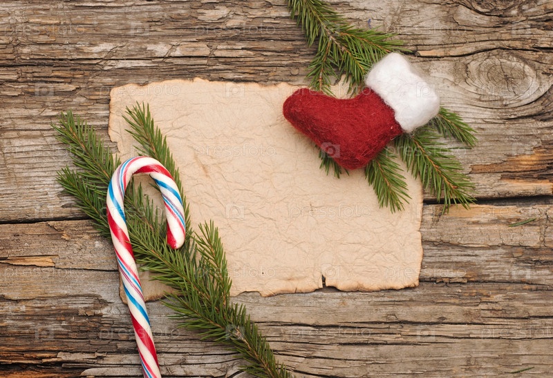 Рождественский фон с пустым старым пергаментом и Рождественским носком
