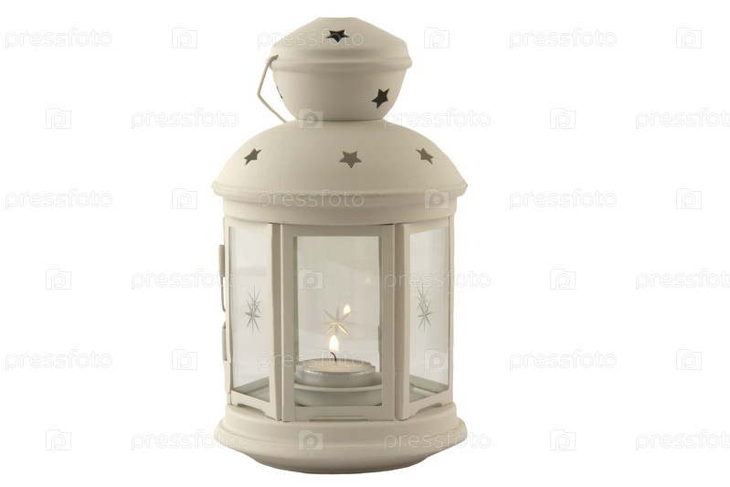 Подсвечник в форме ретро-фонаря с горящей свечей