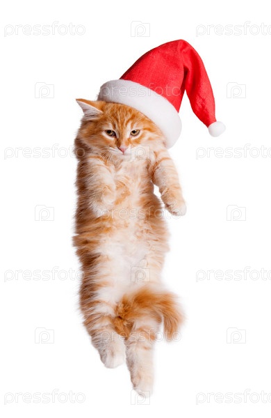 Маленький котенок в шапке Санты