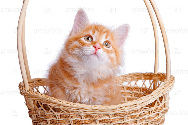 Маленький котенок в соломенной корзине