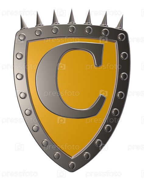 Металлический щит с буквой c на белом фоне - 3d иллюстрация
