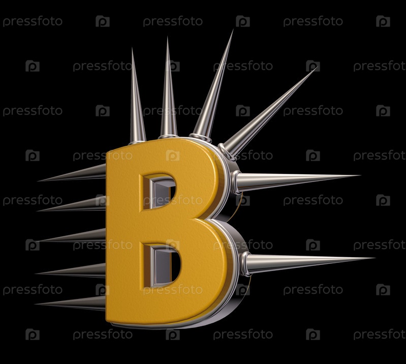 Буква b с металлическими шипами на черном фоне . 3d иллюстрация