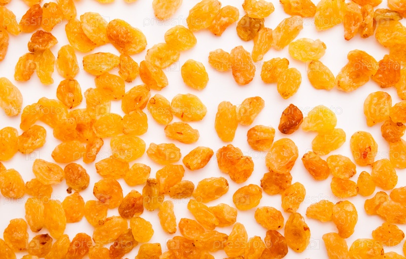 Желтый изюм на белом фоне