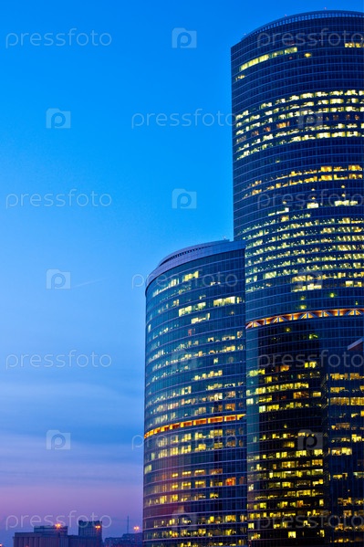 Вечерние огни в окнах бизнес-центра