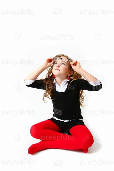 Деловая девочка в очках, изолированная на белом фоне
