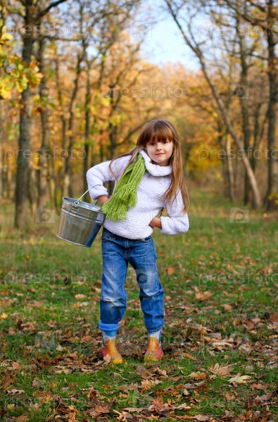 Маленькая девочка с ведром на открытом воздухе