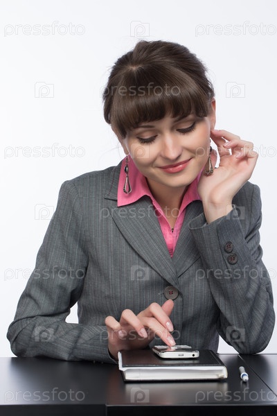 Деловая женщина набирает сообщение на мобильном телефоне