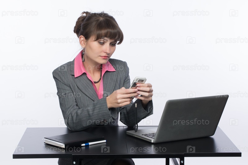 Деловая женщина набирает сообщение на мобильном телефоне