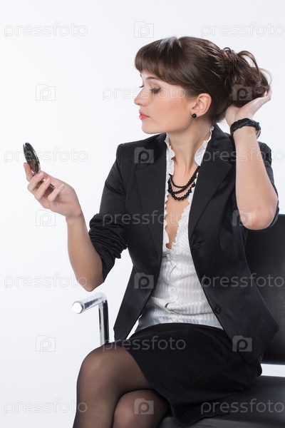 Деловая девушка поправляет прическу