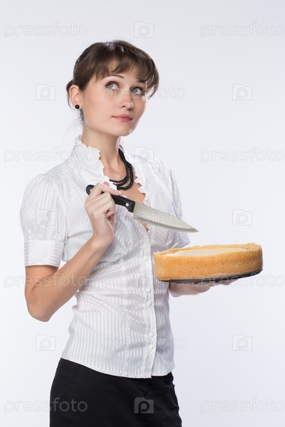 Молодая девушка собирается резать торт