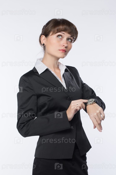 Деловая женщина сверяет время на своих часах