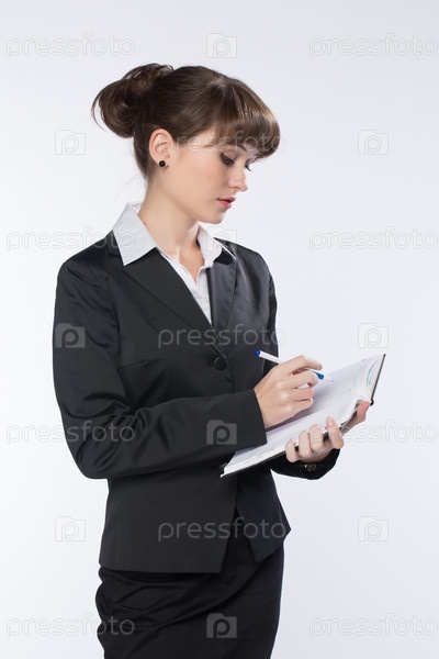 Деловая женщина делает запись в своем блокноте