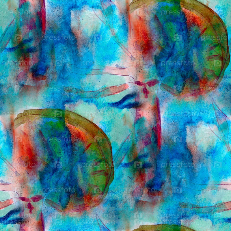 Бесшовные акварельные обои с синими, зелеными и красными мазками кистью