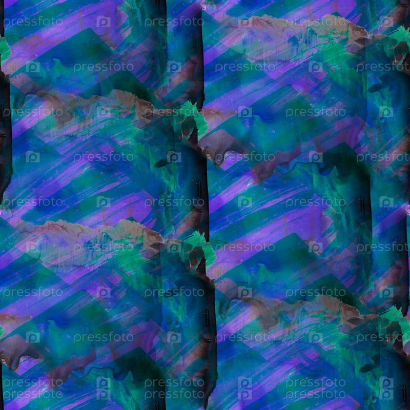 Бесшовные акварельные обои с синими, зелеными и фиолетовыми мазками кистью