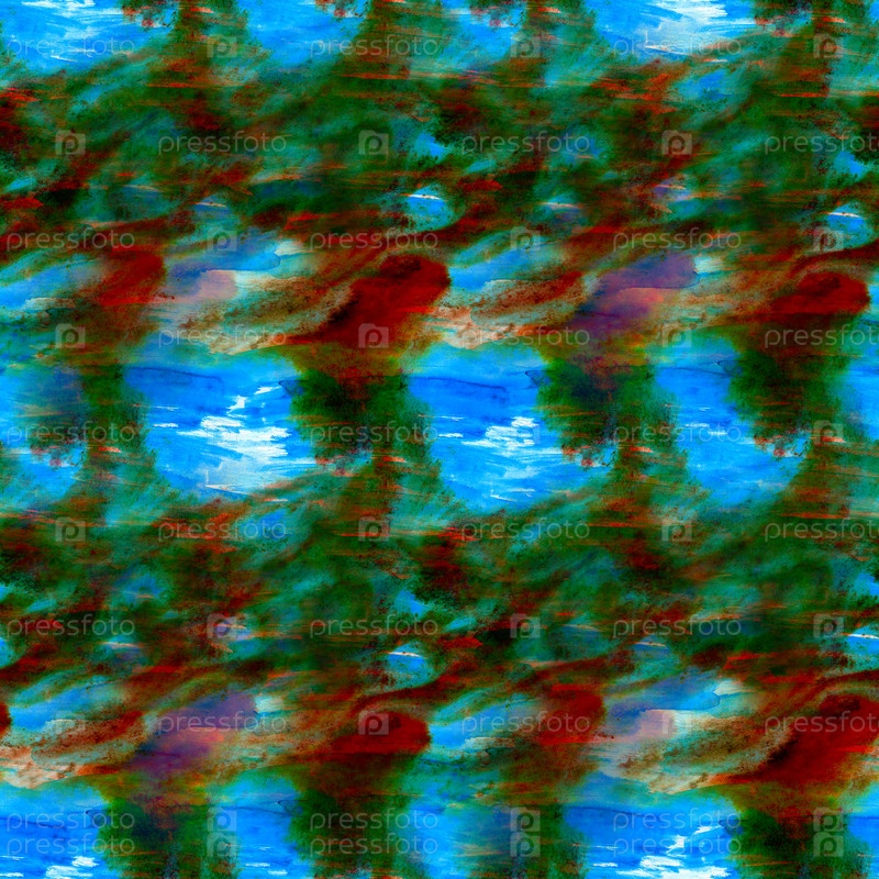 Бесшовные акварельные обои с синими, зелеными и красными мазками кистью