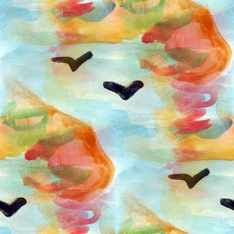 Бесшовный абстрактный акварельный фон с чайками, мазки кистью