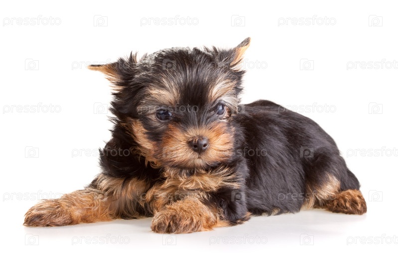 Щенок породы йоркширский терьер на белом фоне