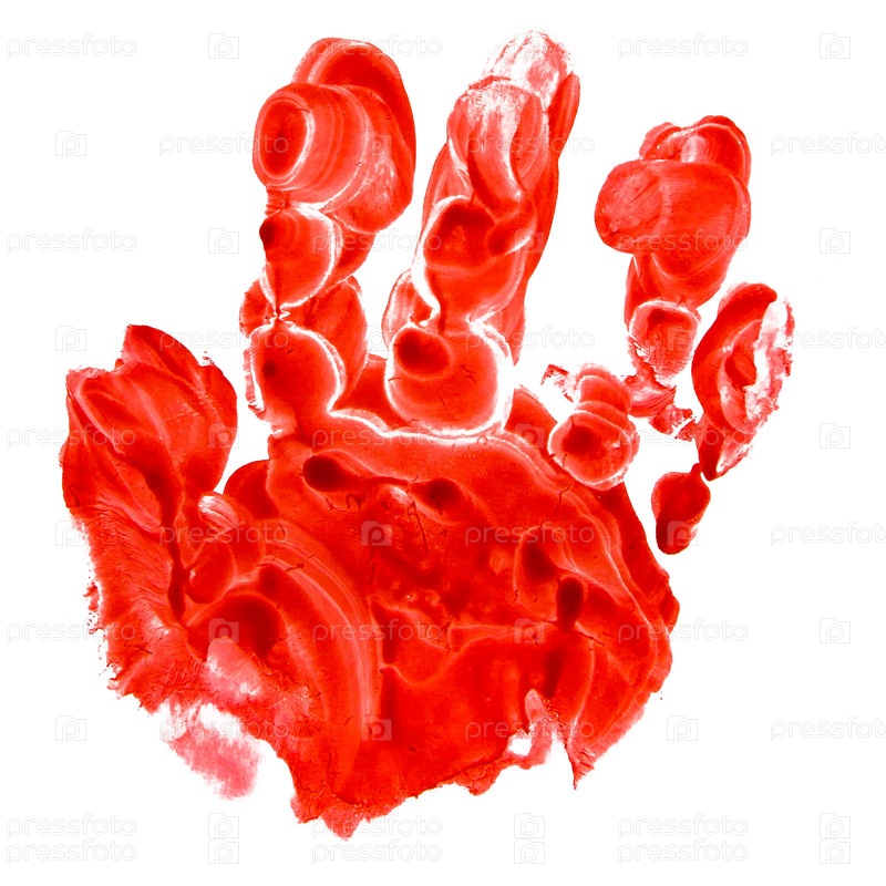 Красный отпечаток детской руки, изолирован на белом фоне