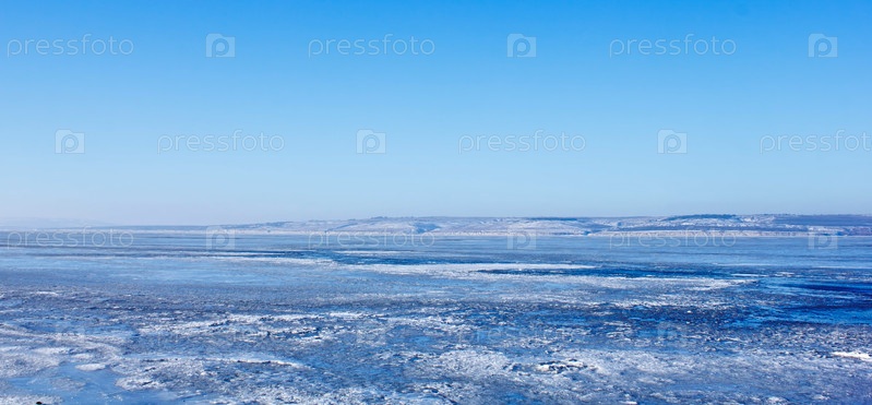 Зимний лед на реке Волга, Россия