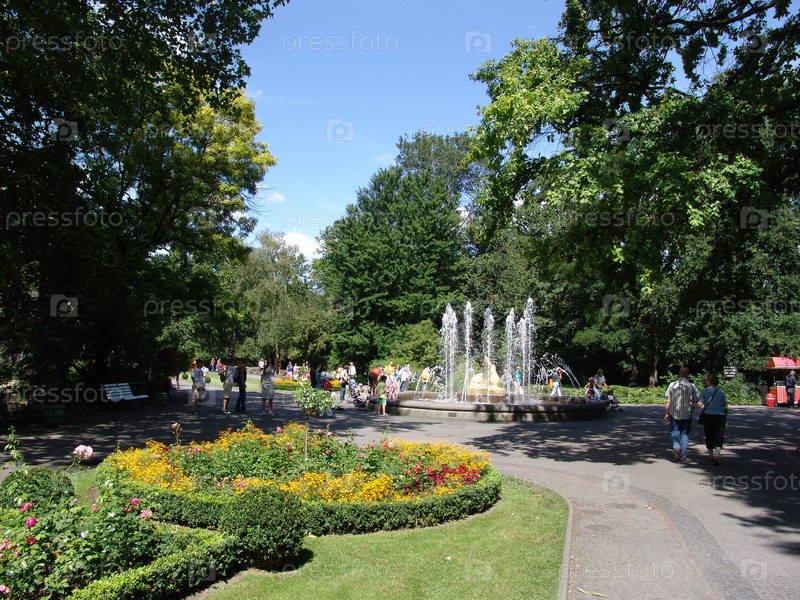 берлин. зоопарк. фонтан. цветы. клумба. доржка. кусты. деревья