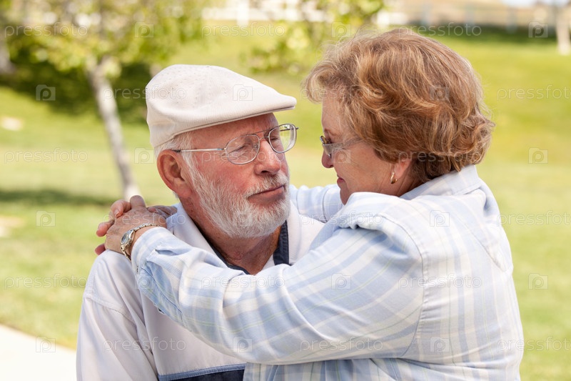 Пожилая счастливая пара в парке