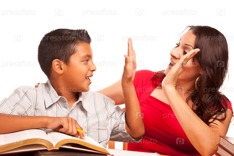 Привлекательная испанская мать и сын делают уроки