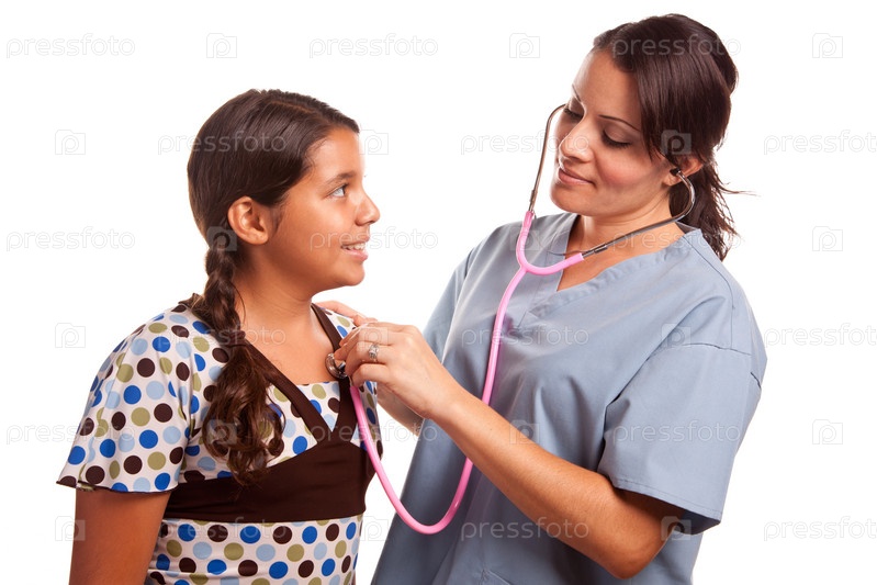 Девочка и женщина врач, изолировано