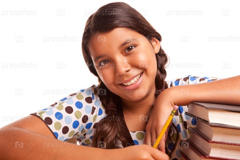 Симпатичная улыбающаяся латиноамериканская девочка делает уроки