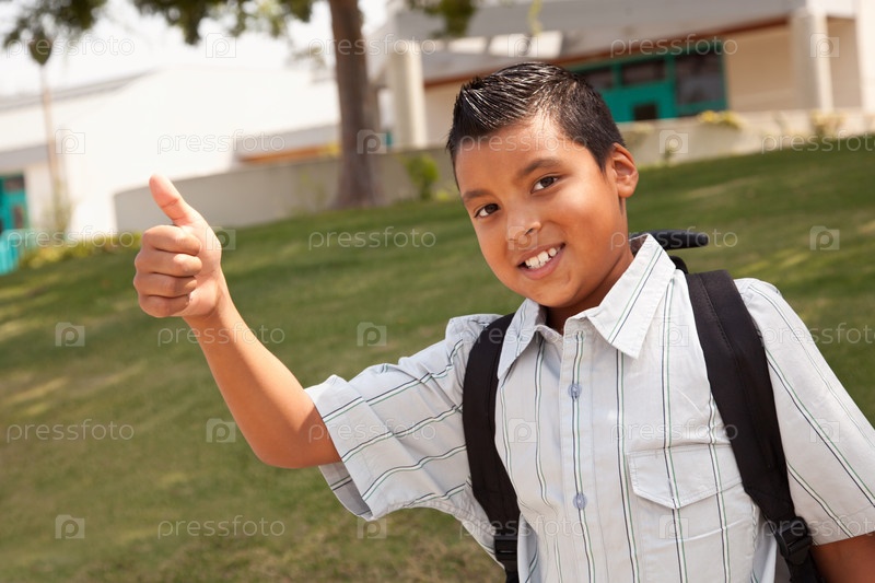 Счастливый латиноамериканский школьник с поднятым большим пальцем