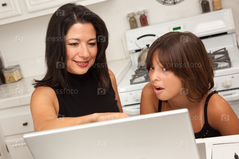 Мать и дочь за ноутбуком