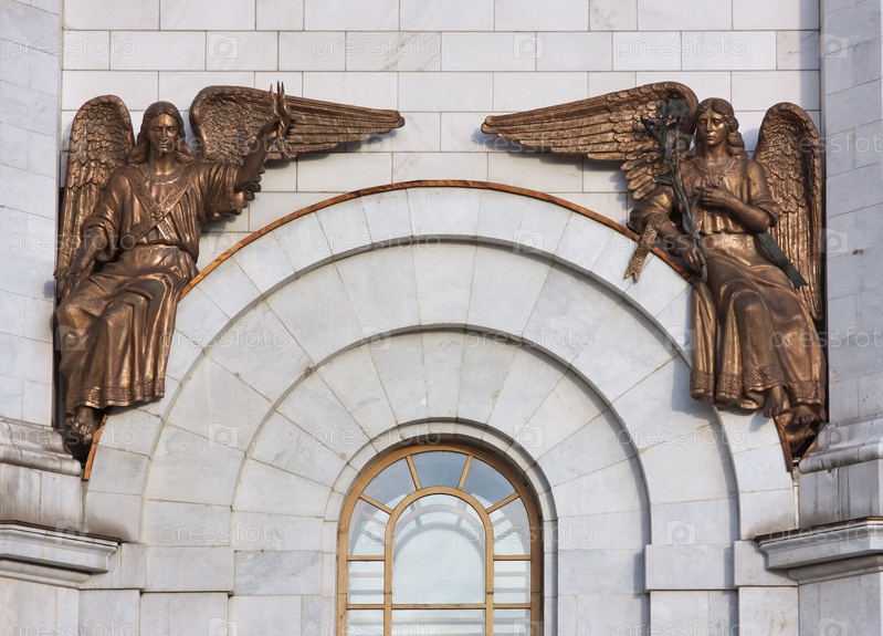 Статуи ангелов на Храме Христа-Спасителя в Москве
